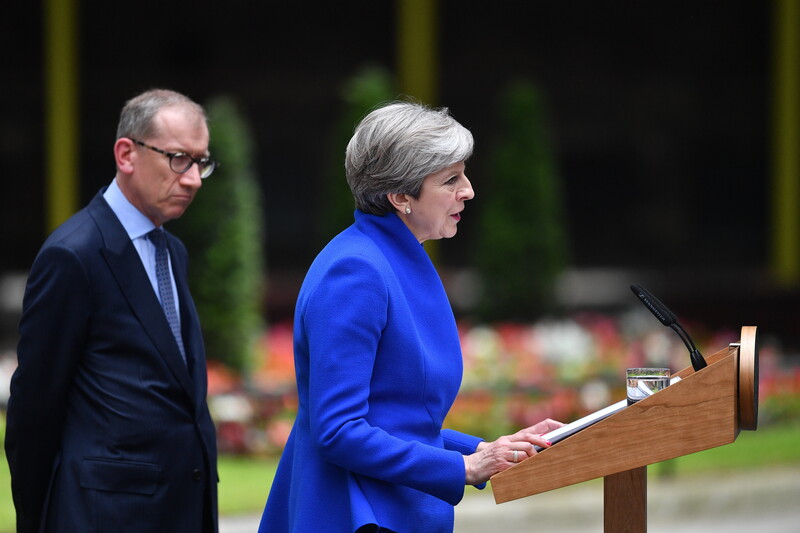 Diminished and humiliated, British Prime Minister Theresa May, speaking in Downing Street on 9 June, will have to rely on a small Christian Zionist party to remain in power.